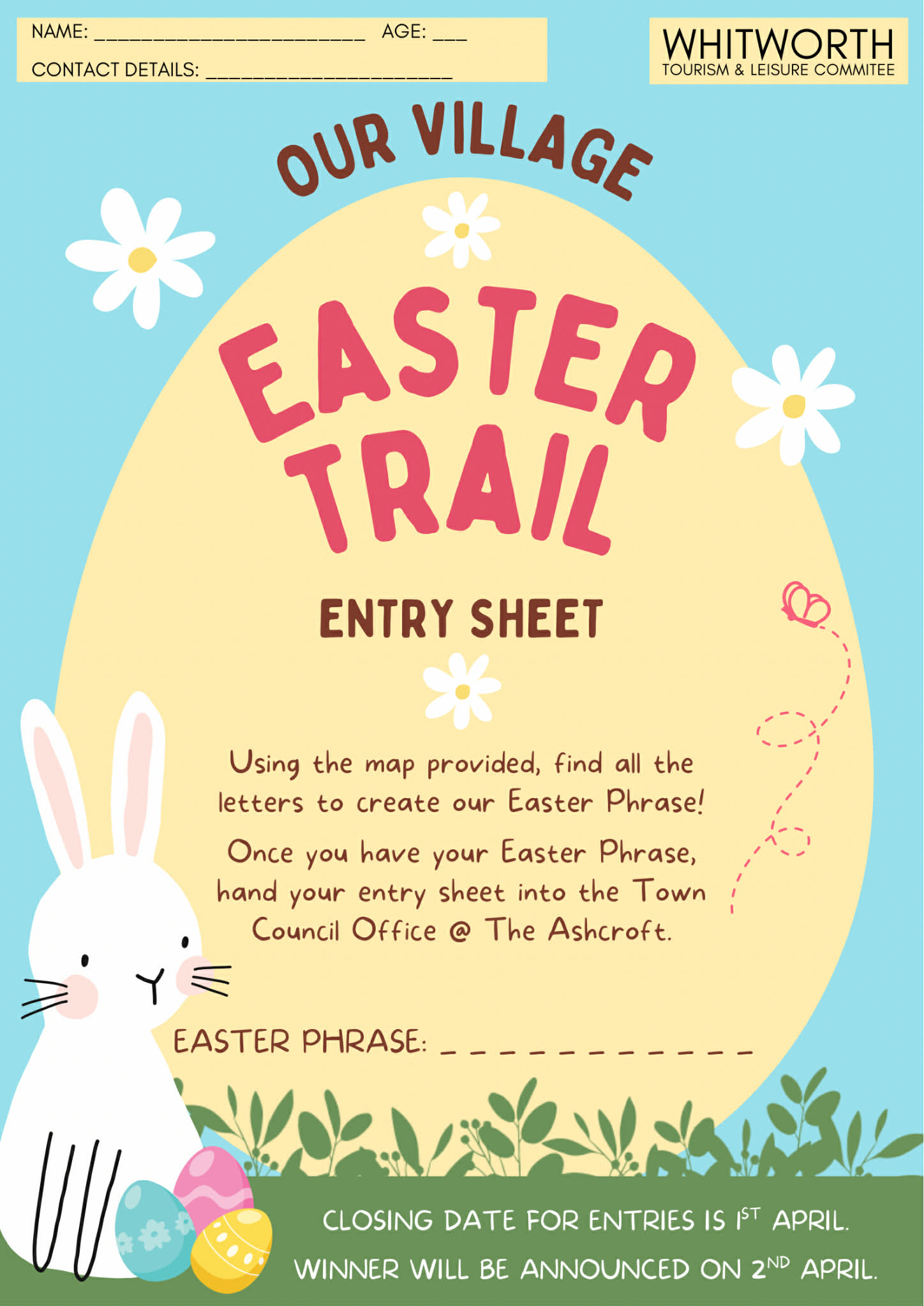 - Hand the phrase in to the Town Council office to be entered into a prize draw! Closing date 1st April.
